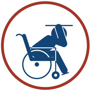 En fauteuil roulant: se tourner le dos aux fenêtres et aux autres dangers, verrouiller les freins, se pencher, et se couvrir la tête.