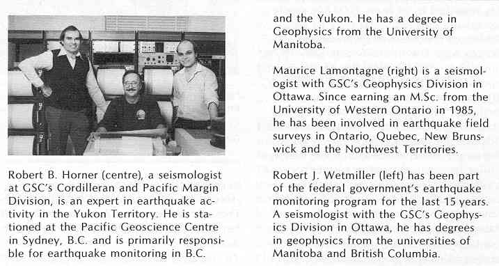 (à gauche) oeuvre dans le cadre du programme canadien d'observation des tremblements de terre depuis 15 ans. Il possède des diplômes en géophysique des universités du Manitoba et de la Colombie-Britannique et travaille à la Division de la géophysique (CGC) en qualité de sismologue.