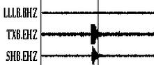 Each horizontal signal line (a "trace") represents the strength, or "amplitude", of the signal received at a single station over the period of an hour. The traces all begin and end at the same time, making it easy for the seismologist to see the difference in time between seismic events at several stations. Each station is part of the Canadian National Seismograph Network and has a unique identifier code of from 3 to 5 letters. For example, PNT is the station code for Penticton, BC. BIB is Bowen Island, BC. For the seismic plots there is a 3 letter code added to the station suffix code that tells the seismologist information about the characteristics of the seismograph signal. For example, ".BHZ" indicates a broadband, high gain seismograph that is oriented on the Z axis (which measures the "up and down" motion of the earth). The ".EHZ" code indicates an extremely shortperiod, high gain, Z axis seismograph. All of the signals on the displayed seismic plots have a Z axis orientation so that comparisons are easily made between seismograms. By looking at the time differences between the arrival of the same signal at several stations, and knowing how fast the signal is traveling through the earth's crust, trigonometry can be applied to determine the exact location of the earthquake.